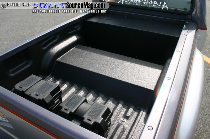 Moving up front a set up RS 62 slam bags was fitted along with a pair of Toxic shocks. The frame was then plated with 1/4” steel so it could remain unscathed when Ken wanted to throw a few sparks for onlookers. With his goals in order and his frame planted flat on the ground Ken was now ready to drag his truck into the body shop.