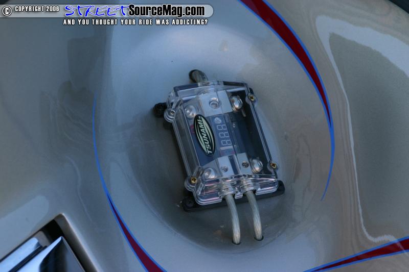 Fleet’s Sebring wouldn’t get very far at any show with its stock stance so a 2 pump Showtime hydro setup was installed with 4 accumulators, 10 switch’s, and 4 yellow top battery’s. All of the hydro lines were hard lined. To get the car to lay a little lower the front spindles were shortened, custom upper and lower control arms were built for the rear, and Toyota spindles were installed in the rear.