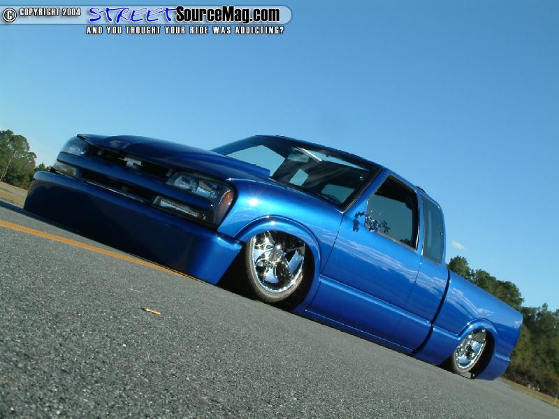 Wanting to get the S10 down on the ground Gil would begin the process of applying a 3 ½ inch body drop to his ride. With a custom 2 x 3 x 3/16” frame constructed under the body Gil would be well on his way. In the rear Gil would install a custom 4-link while the front would house a set of 2” DJM spindles and ART control arms. With the ability for the body to lay on the ground Gil would then install 4 Firestone 2600 bags with Parker valves for adjustability.