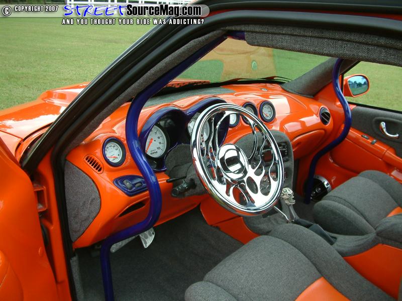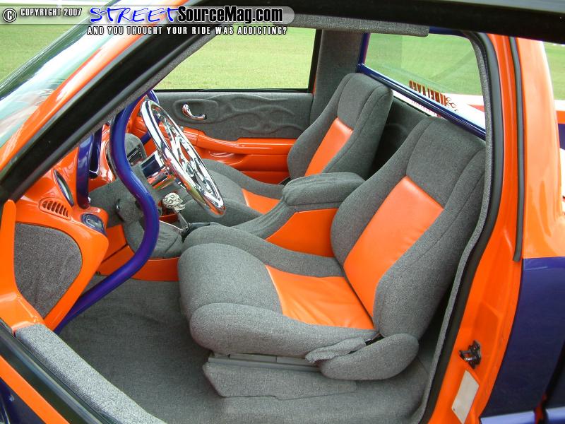 The interior would be no simple task as the dash would be replaced with a smoothed and painted '00 dash along with door panels to match. The headliner would then be wrapped in tweed with flamed graphics along with other interior panels wrapped to match.