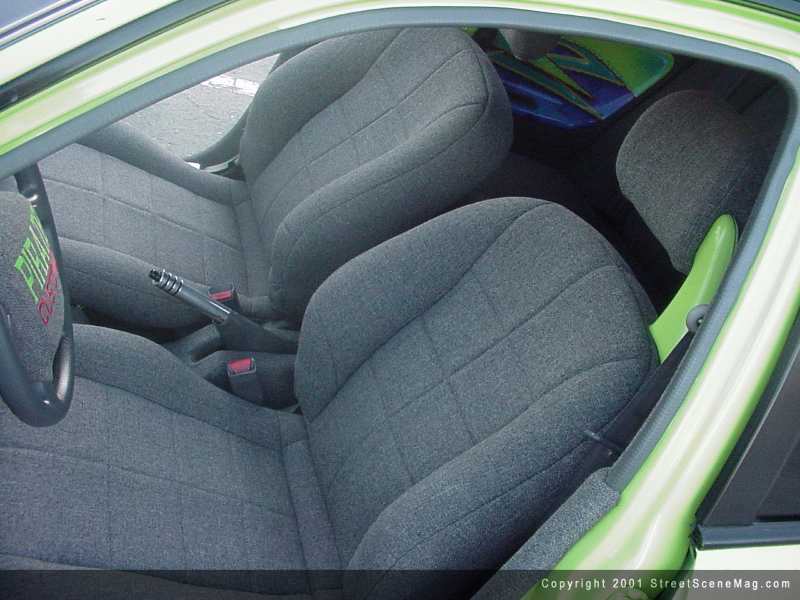 To tie things together, Tony tweeded the headliner and placed a large Honda emblem for added show. To complete the tweed interior, the use of ABC pillars were installed, along with laying the floors in tweed and applying the material on the rear deck. Now that all the panels were covered it was time to match up the seats. To do this, Tony stayed with the charcoal gray tweed and recovered the seats along with utilizing square padding to give an extra clean look.