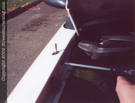 Step 4 Now get on your back and remove the eleven 13mm bolts holding the inner fender to the outer fender and firewall. Don't forget the nut that holds the battery clamp in position, its part of the inner fender as well. I opted to remove my battery afterwards, but you can just support it so it doesn't bend it's tray. Ta-da...now you have a big hole in your engine compartment. Step 5 Ok, back to the problem at hand. Begin the removal of your ugly stock antenna by unscrewing it off it's base, then use a suitable pair of pliers to remove the retaining nut off the fender. We're not going to reuse this so we're not too worried if it gets damaged. Step 6 Next take the 2 phillips head screws out of the fender that support the antenna base.