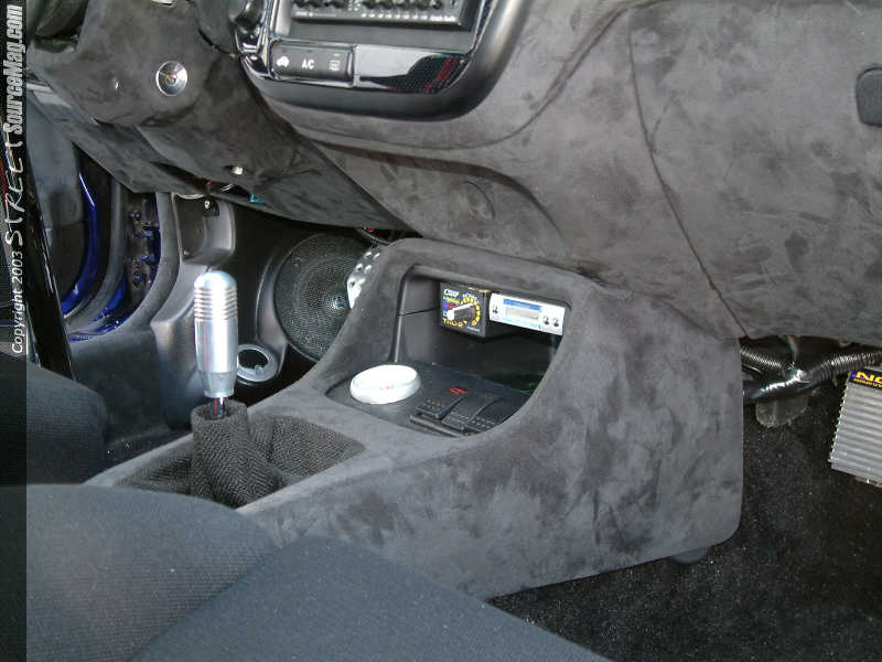 Not wanting to feel left out Daniel knew the interior would have to be as wild as the exterior so the Sparco SRD front seats, dash, door panels, headliner and many other panels were wrapped in Black suede leather by Apollo Interiors of Alhambra, CA.