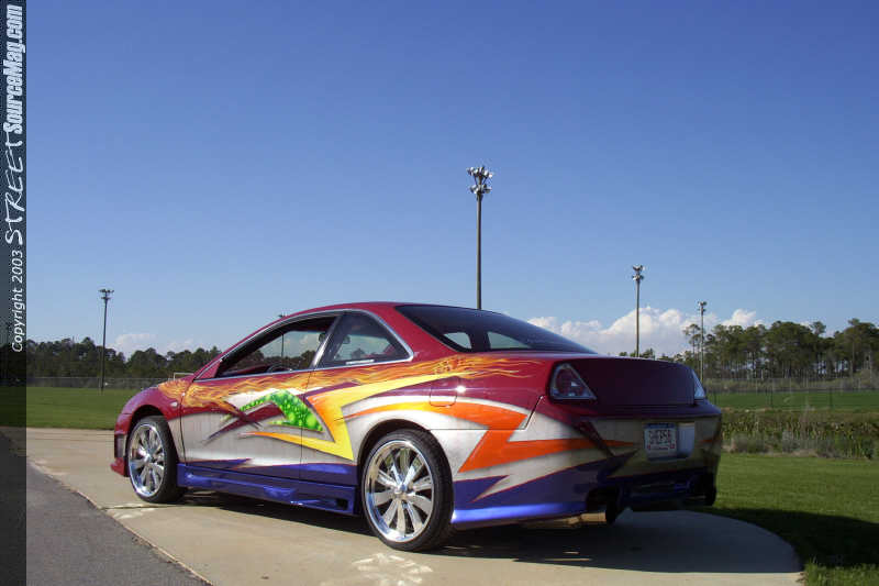 Slow Burn It seems that the import custom scene has taken on two totally different paths over the last couple years. First there is the race inspired import scene and then there is the custom scene, or as some would like to call it, the "mini truckin" inspired import scene. Whichever road you choose is fine as long as you do and do it well. And that is just what Justin Shepherd of Phenix City, AL has done. He has taken his Honda Accord to a whole new level.