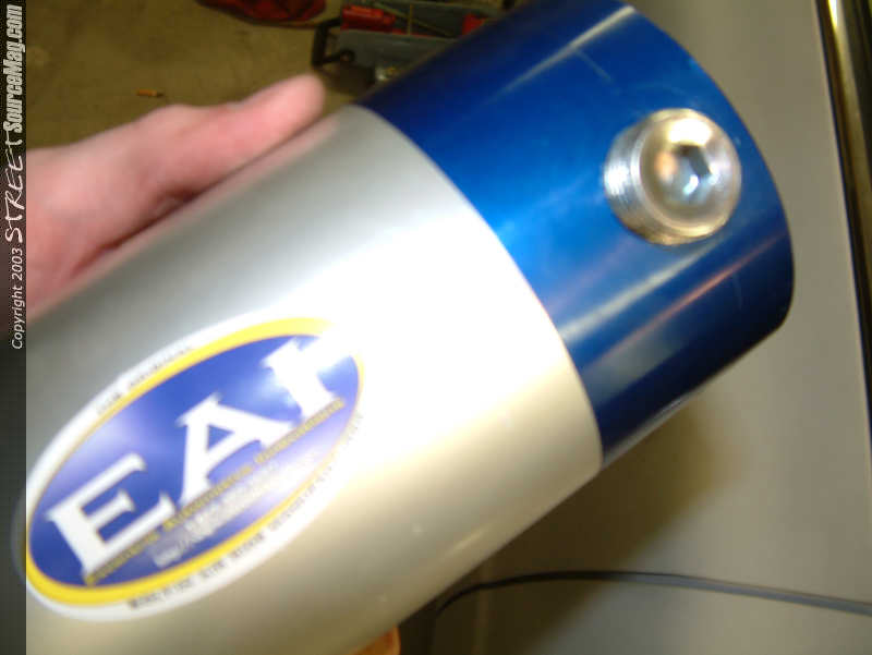 2. Since the front of the car is ready for its new suspension, it's time to assemble the new Parker air cylinders. First, install a small sir muffler to the bottom of the air cylinders. These will act as filters, keeping dirt and moisture out of the cylinder. (keeping these mufflers out is an option, and it will speed up the cylinders if you are looking for fast). The fork adapter simply screws onto the rod end of the cylinder. With the fork adapter in place, you will then bolt on the billet aluminum upper mounts (DO NOT OVER TIGHTEN BOLTS IN TO BILLET BRACKETS. IT MAY DAMAGE BRACKETS AND TOPS OF CYLINDERS.), and then attach the air fittings.