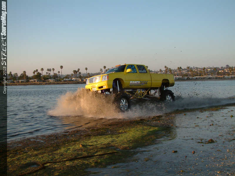 Next the Chevy would be painted a PPG Monster yellow along with Passion purple paint. Jeff Miller from JM Customs of Temecula, CA would be responsible for painting the truck along with the frame rails. To complete the exterior, Line X of Temecula, CA would be called in to spray the bed and speaker box lining.