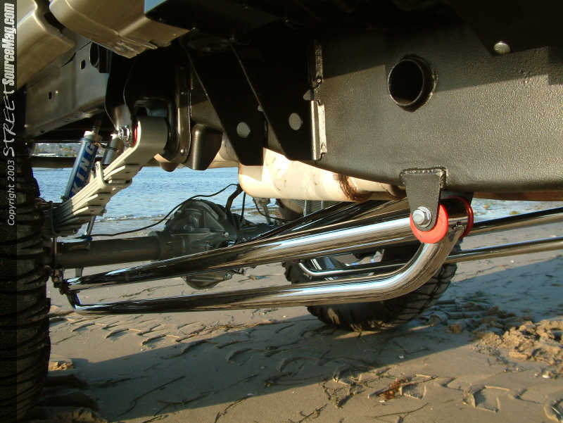 After the build up complete, the bars would be chrome plated along with much of the suspension items. To help the suspension and rough road riding, a set of King coilovers would be installed front and rear. With a 3-inch body lift, there was no problem clearing the fenders with the 20-inch KMC wheels, which have been wrapped in 40 inch TRXUS SuperSwampers.
