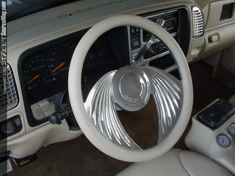Then Jimmie himself to bring everything together would dye the dash. Billet inserts can also be found through out the dash and as replacement vents, along with a billet B.A.D. steering wheel.