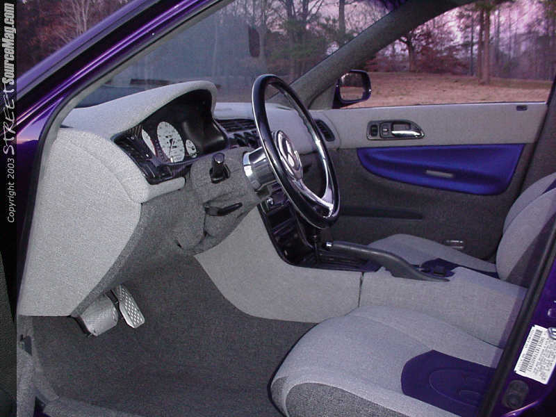 After all the necessary items were rewrapped, many other items were simply replaced. One can find carbon fiber dash panels and Indigo white face gauges as well as a Billet Specialties Spider II steering wheel, Momo billet pedals and carbon fiber dash pieces.