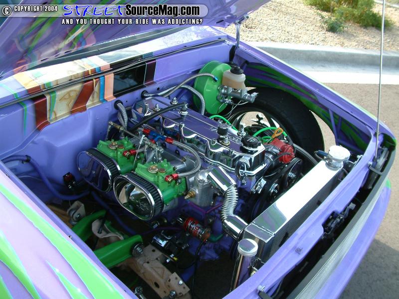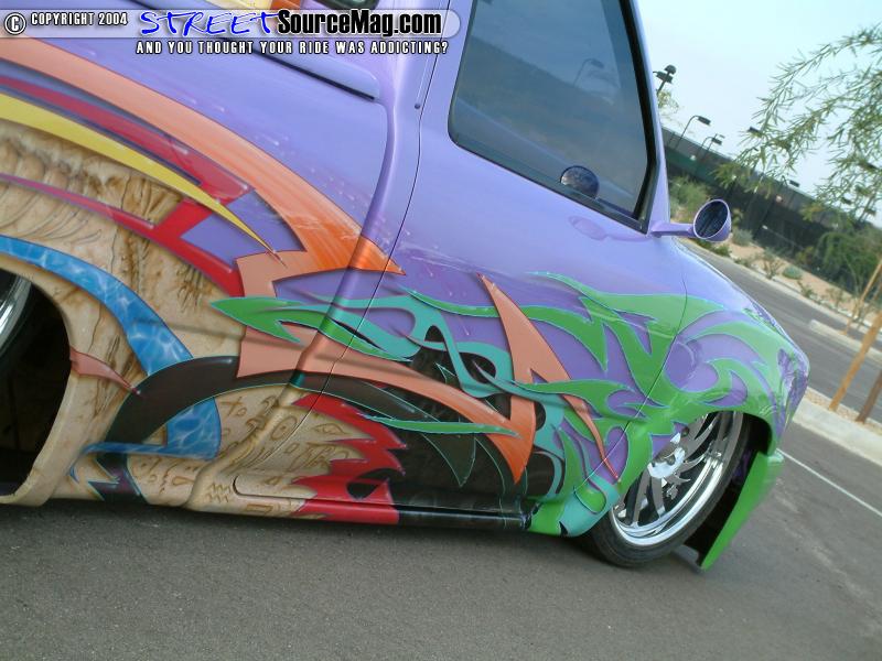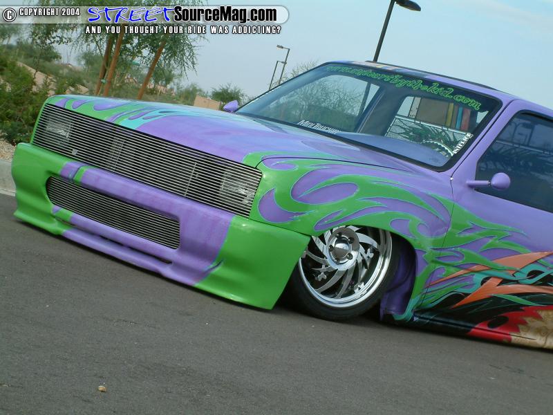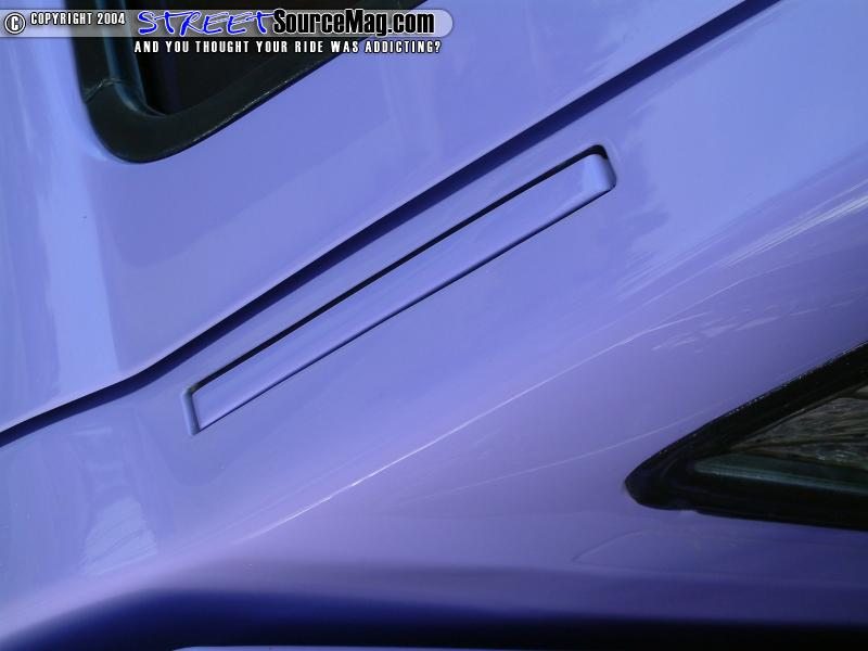 Not yet done with the modifications, the front bumper would then be molded to the valance and the door handles would be junked for sheet metal.   With the normal modifications already complete Charles would have the firewall and bed cab walls all smoothed out. A Wabesto electric sunroof was also installed by Rich at Vinyl Top Specialists along with the tonnue cover being embossed with a Tyrannosauruses Rex skull incorporated into the soon to be added graphics.