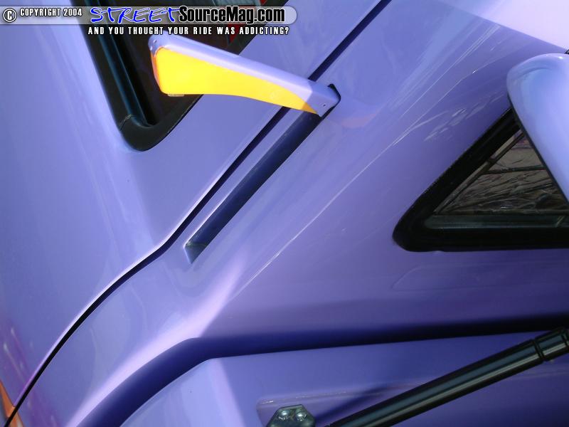 To also give more notice of turning direction to those behind him, a set of semaphores would be installed into the side pillars of the cab.   The gas door would be shaved and relocated into the bed as a CBR 600 gas door.