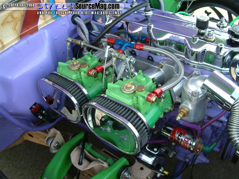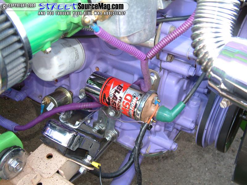 Next, a dual Webber side draft carburetors would be installed for that intense performance. A Cannon intake system would then be installed to help with the incoming quality air.   LC Engineering distributor assists the newly wired up MSD blaster coil and ignition for a good spark, while the drive shaft would be chromed for that over all custom appeal. Continuing with the bling, a chrome alternator with chrome engine pulleys and valve covers would be installed.