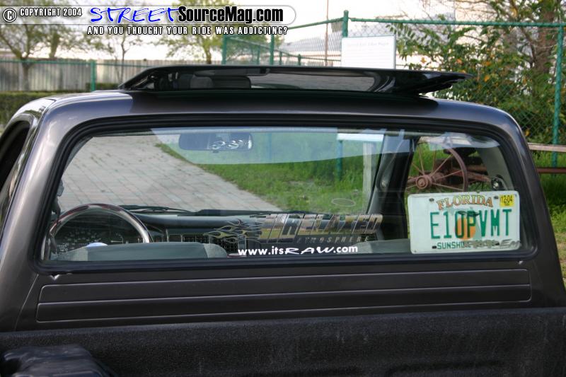With Tony Rispoli of Orlando, Fl being a video editor by trade, it would only seem natural that he would build a ride that would grab attention every where he went. Well to handle this assumption Tony would purchase a Toyota Tacoma for about 14 G's back in April of '02. With 2 years under the build up and about another 12 G's you can see the 6 years experience of "what's cool" come to life. After all, for Tony it's all about the fun of building the rides and the love of the sport/hobby.