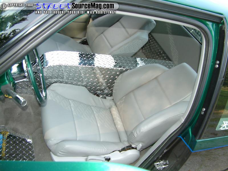 Starting with the dash Jason would have it molded, fiberglassed and painted while leather is found wrapped around the door panels along with other panels found in the cab. Next Jason would have a set of 91 Honda Prelude seats wrapped and installed.