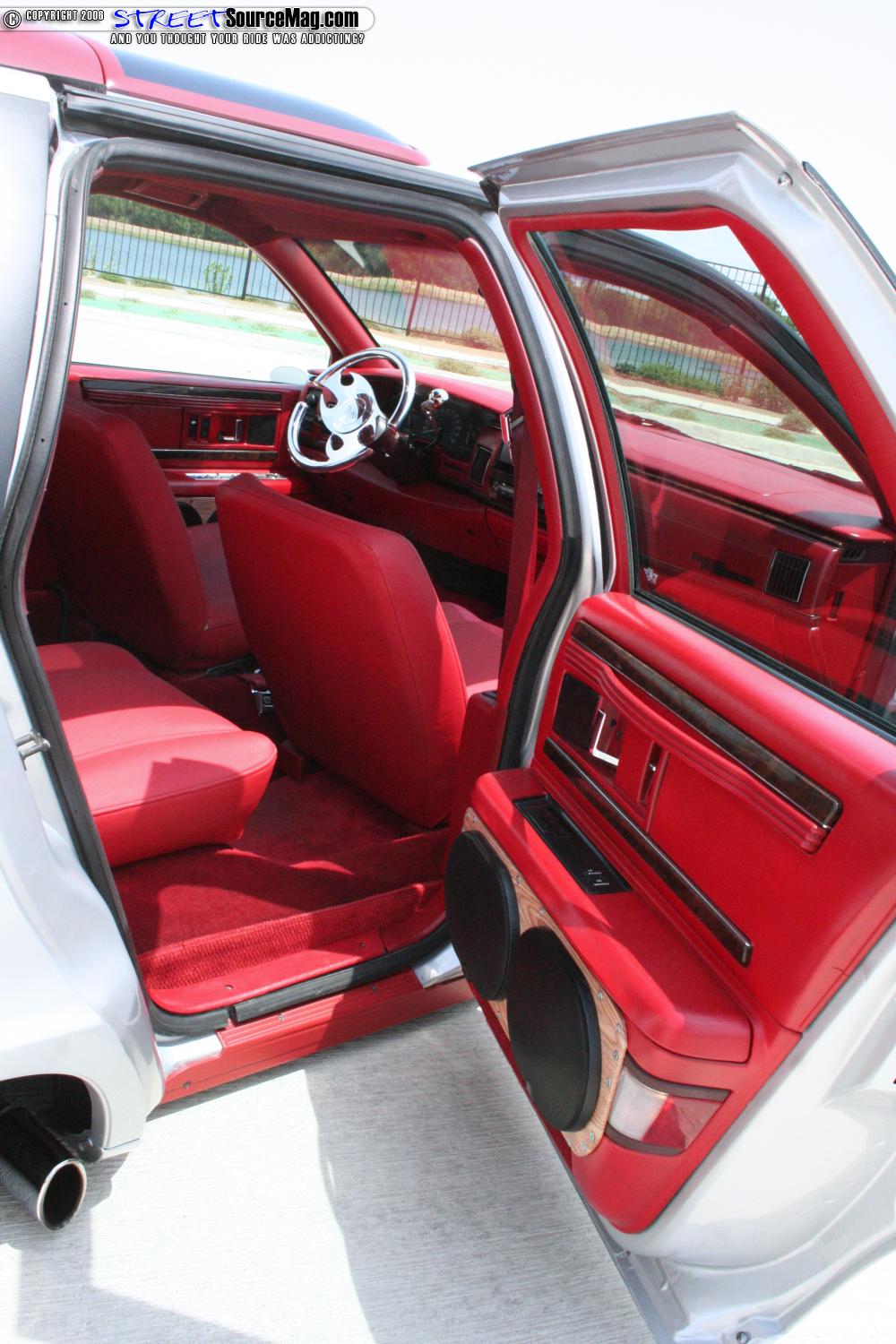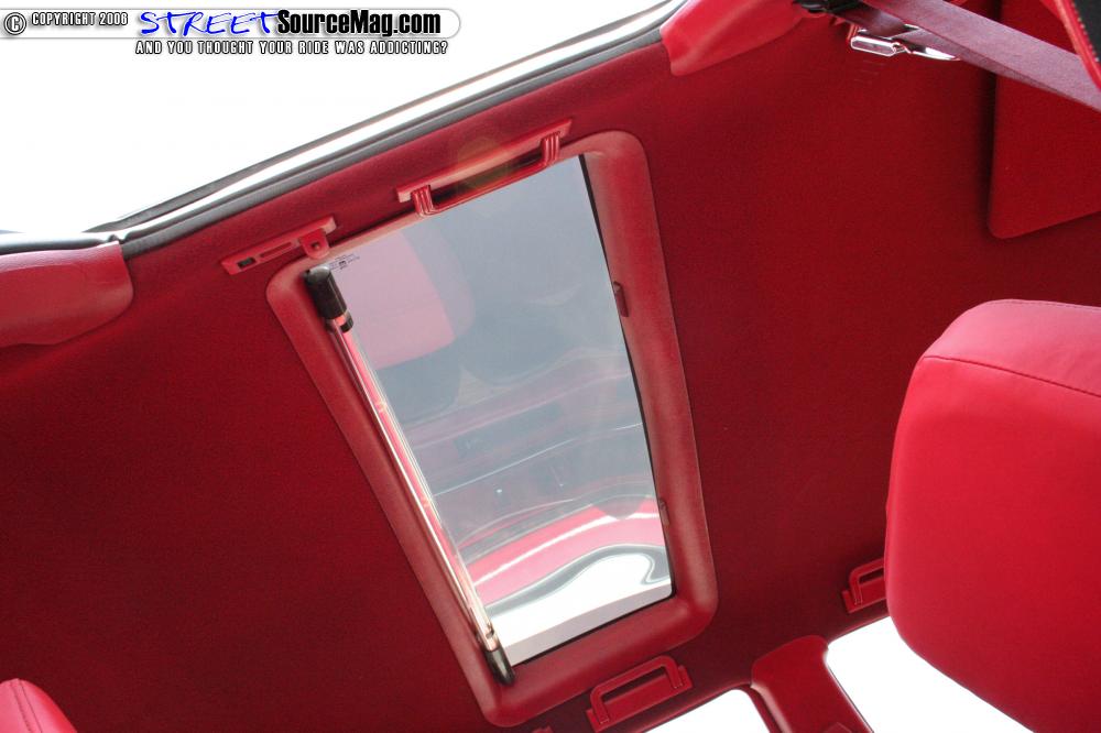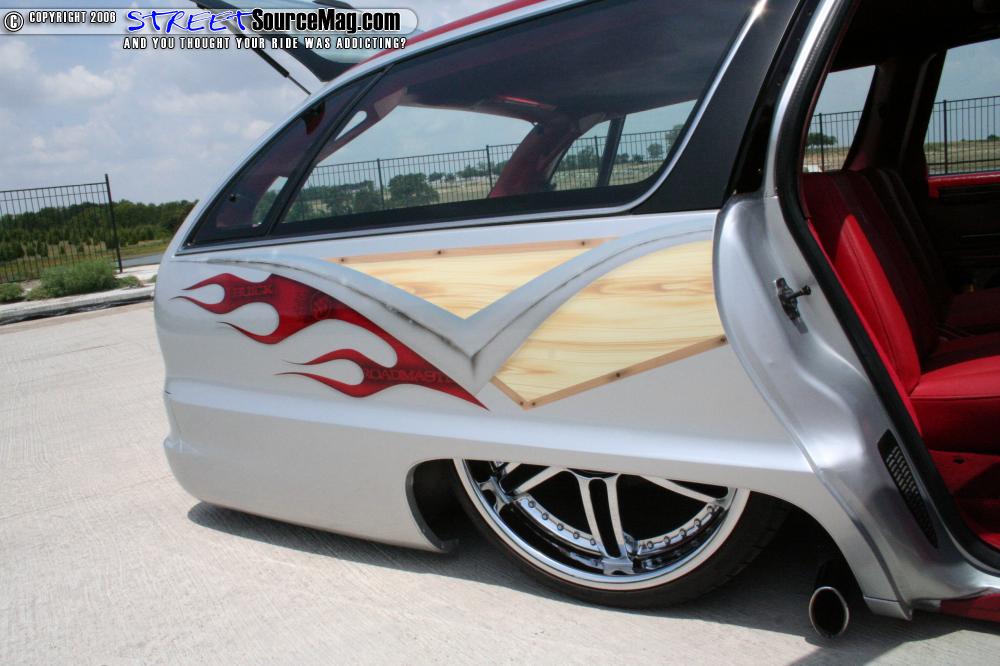 Keeping with the wood theme the door panels received speaker surrounds, behind the second set of buckets lies the Amp rack with more wood which is dyed red to blend in.