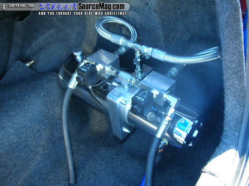 Nothing complements a full custom ride nicer then a low stance. To manage these feats Ryan would install a CCE 2 pump set up. The install would include 4 Optima yellow top batteries along with 8” rams up fronts and 10” in the rear.
