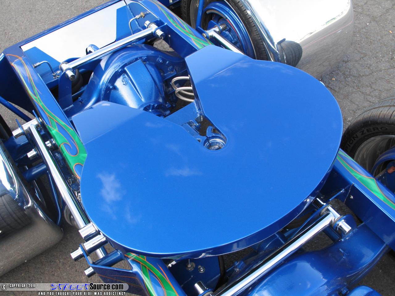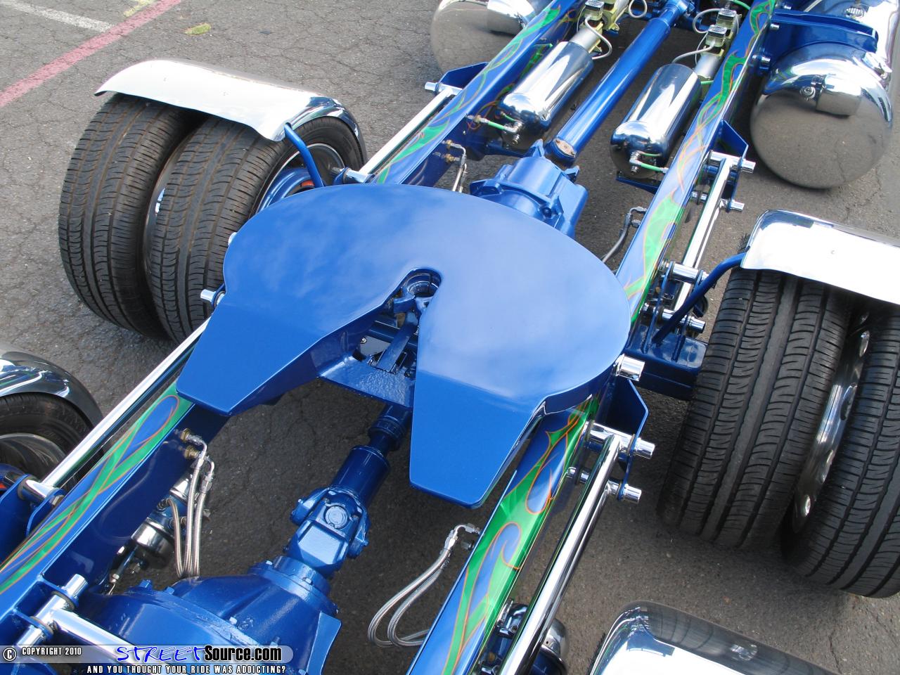 After buying into the family trucking business at 25, Botelho began building custom big rigs on the side, but never getting the chance to build the dream that he so long sought after. “I had been building custom rigs for myself mostly,” Botelho says. “However, someone would usually come along and buy them as soon as they were finished or sometimes even before I would get a chance to finish it.”However, in late 2006, Botelho was asked to participate in the Big Rig Build-Off at the Mid-America Trucking show in Louisville, Kentucky, a prestigious event in the big rig world. The rules are simple enough: each builder has 90 days to complete their build and it must be able to drive into the show under its own power. If the 90 day deadline wasn’t short enough, at the time of his invitation, Botelho was already behind seven days, leaving him with just 83 days to create this beast. Knowing it was time to turn his dream into reality, Botelho began making arrangements to begin the build.Finally being able to use all of the parts that he been hoarding all of those years, Botelho blew the dust off of the rolled over cab from back when he was a teenager and purchased a burnt up 1998 Peterbilt for the chassis and suspension. Deciding to build the frame at his friend’s shop, the truck was moved an hour away to John Chamoro’s shop, Solo Customs. It was there that Botelho and three friends worked tirelessly for fifty days to perfect the chassis and suspension, boxing and smoothing everything. Due to the very nature of the project, nearly everything had to be handmade, from the four link bushings to the rear fenders. The frame was notched over each axle to accommodate for the drop while six 400 psi Slam Specialties air bags provide the lift. Beyond the engine compressor for the air brakes, four Air Zenith compressors and six stainless air tanks provide the air management for this semi. No custom big rig would be complete without some giant rolling attire and thanks to his cousin, who happens to be a machinist, (6) 24.5 Alcoa’s were machined down to 24”, allowing them to be wrapped in Pirelli 305/35/ZR24s.