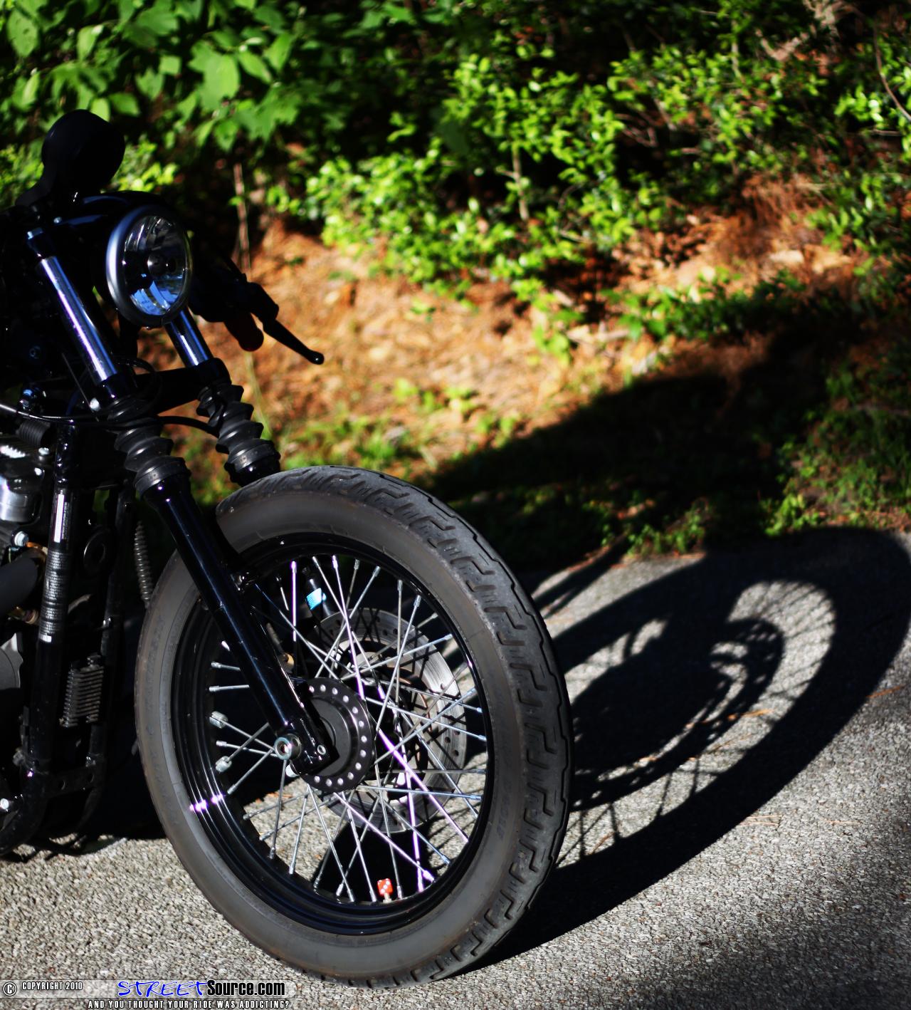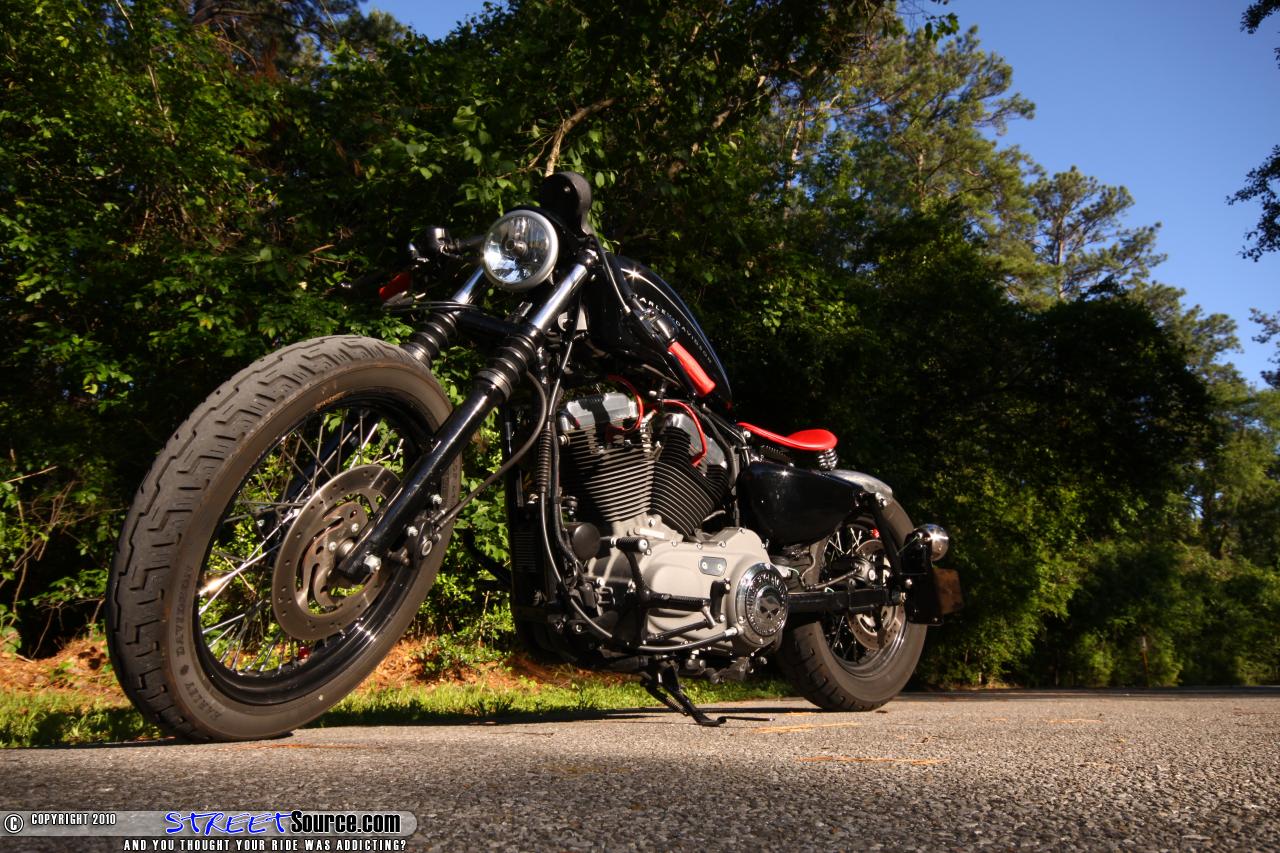 Now with the bike running good and looking better than Harley made it, he had to get it out there and ride. Since the speedo only goes to 120 he had to call in a favor, and got a friend to radar him and was clocked at 134mph. Not bad for a 550lb bike with a few less hp than a mazda b-series. Finally after all this was said and done Steven was at a stopping point on his bike and could get back to his true passion, his trucks. He poured his heart and soul into his purple 95 nissan hardbody that was totaled. So knowing his new froniter would be a slow build this Harley fulfilled the void for the build process. So the bike is done now, and the frontier is currently torn apart being layed out, its time for him to sink all his time and money :) into the truck so it can be filling the pages of the magazine soon enough.