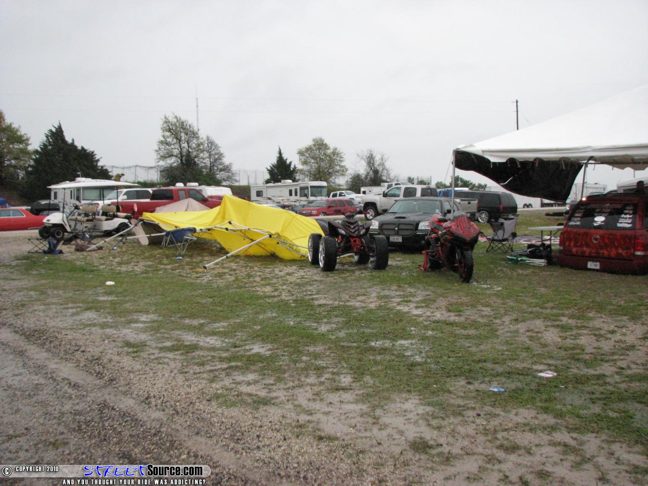 I have been to Tex Mex for several years now and always have a good time. I got in Friday morning and the show was great fun. The guys at KIK kept feeding me Jungle Juice (assholes). Because of the Jungle Juice, I almost fell face first into the fire at the sunset camp. Funny part is, I don’t remember almost falling. I remember slipping a little. But I guess everything looks scary when your drunk and it probably was. I had a great time Friday night!But…It seems that some of the best shows in the scene are not immune to old Mother Nature. We woke up Saturday morning at it wasn’t too bad. Then all hell broke loose. Crazy gusts of wind and POORing rain turned the show grounds into what looked like a war zone. Minitrucks + nasty mud = lots of trucks stuck. I managed to get around and take a few pictures for you guys. I really hope you appreciate it cause I bout froze off one of my huts in the cold. And I am from Idaho where it gets -25 degrees. That wind made it a cold day. Nobody knows if they are going to throw this show again, but I hope they do. Very fun and i recommend going!By Kris - aka SSM-Webmaster