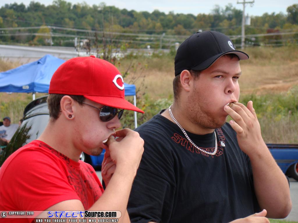 The 2nd Annual Drop Em Wear Cruise In located in Winston-Salem, North Carolina at the Drop Em Wear headquarters was a blast for all. With it being only the second year for this event, rides from up and down the entire east coast were there representing, even one from the U.S. Virgin Islands, making for a very nice turnout. This show was tons of fun for everyone involved. Drop Em Wear gear was given out as prizes for a variety of games, such as hot dog eating, half gallon chocolate milk chug, marshmallow face stuff, two nuts in a pie, super hot wing eating, putting on the frozen T-shirt, and the 40 oz. beer chug (I.D. required of course). With plenty of chances for people to win something beyond one of the unique show trophies, everyone had an opportunity to walk away with something from this show. On a special note, owners John Beebe and Jennie Hendrex got engaged during the awards ceremony, a total surprise to Jeannie. John thought what a better place to ask for Jennie’s hand in marriage then surrounded by the people and scene they love. Oh, and in case you were wondering, Jennie did say, “YES!” Congratulations goes to the both of you and maybe there could be a show at the wedding as well (just a though lol). For more info for 2010 on this show visit www.dropemwear.com or call 336-774-9612 for details. By E. Alan Shaw