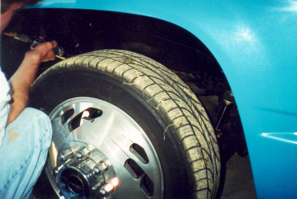 After the interior is all removed, the next thing to do is the frame horns. The frame horns are marked and cut off with the bumper & valance still attached. here, you can see eric using a reciprocating saw to make some really neat cuts, that won't need any grinding before welding. A plasma cutter could be used, but wouldn't do the job as cleanly.