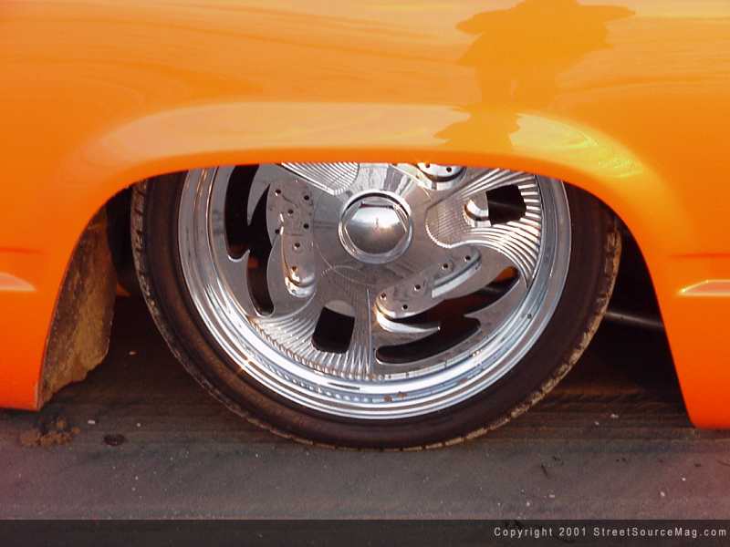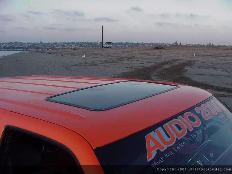 Not only was a Cadillac front clip installed, it was also completely molded together, for a true one-off look. With the new custom molded bumper, grille, hood and headlights, the new overall look that Wendy strived for was beginning to take place. The custom front bumper also was equipped with a molded Trenz billet insert.  Moving on, the wiper cowl was smoothed and the door handles were shaved. Other shaved items include the antenna along with the roof rack. Up top, you will find a power sunroof, provided by American Sunroof Company of San Diego, California.
