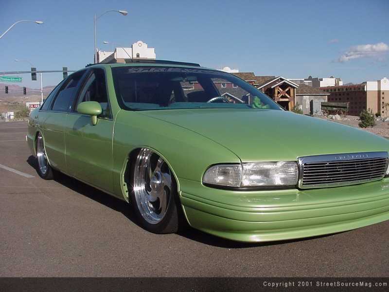 Before painting his Caprice, Jeremy decided that there was one more thing needing attention. Curing his hunger for sun, the installation of a 40x40 Britax sliding ragtop would allow the sun to shine bright throughout the interior of the Caprice. Central Paint and Body of Phoenix was responsible for all of the exterior modifications. Now truly ready for paint, Jeremy hauled the Caprice to Elite Collision of Tempe, Arizona to have Jimmy throw down his expertise. Utilizing the 2001 VW Bug sonic green paint, "The Grinch" was coming true to form.