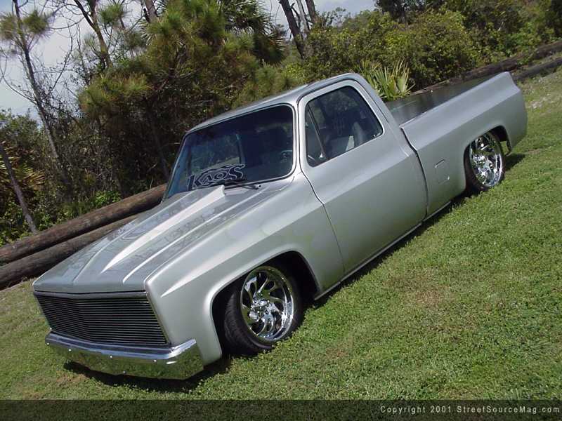 Anybody knows that with a custom vehicle a suspension tweak is always a must. Bradley was able to see that low was the best way to go. Wanting not only a low-down stance, but adjustability on the fly, Bradley turned to C&R Autobody in Tallahassee, Florida to rework the Chevy's stock suspension. In the front, DJM 2 ½" drop spindles were bolted up to the factory suspension and Firestone airbags were custom fit in the front of Bradley's Chevy. In the rear, the factory leaf springs were left in place, but Firestone airbags brackets were built. A custom C-Notch was also built, allowing the Chevy more travel room. At all four corners you can find Doeschtech shocks, to smooth out the ride quality. In the bed, a custom built enclosure houses the custom painted, seven gallon airtank, with Bradley manning the controls of the manual valves from the cab of his Chevy.