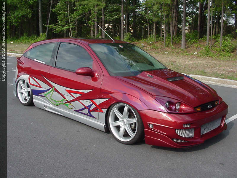 Howard wanted his Focus to have a smooth, overall appearance. With that in mind, Howard's Focus was smoothed from front to rear, including the emblems, moldings, rear hatch and door handles.  The gas filler door was shaved and new filler neck custom fit into that back hatch. Howard also frenched the license plate through the wing and bodyline for a one-off appearance.