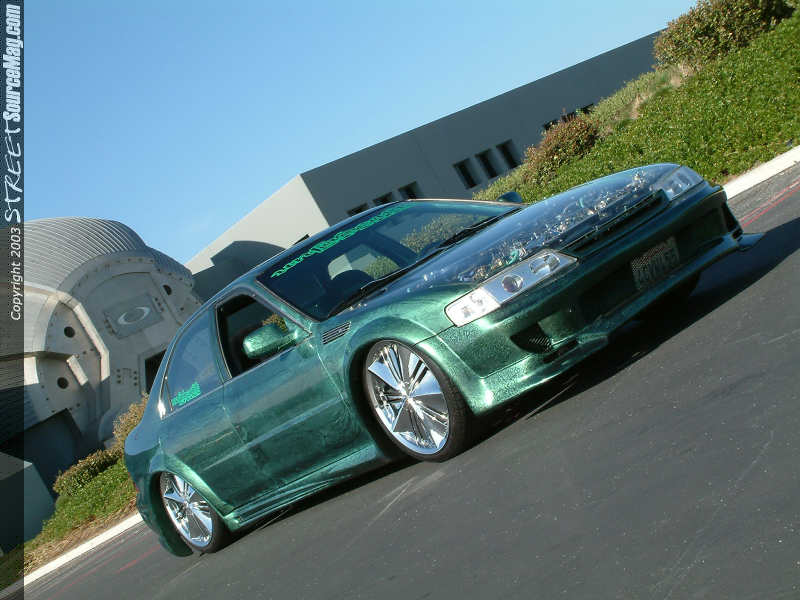 With the bodywork complete to Imani's expectations the car was then prepped and then painted gator green, a House of Colors mixture. The marbleized paint job really helps bring out the custom look and feel with the Accord. LA Majestics from Los Angeles, CA are responsible for the body and paintwork applied to Imani's Accord.