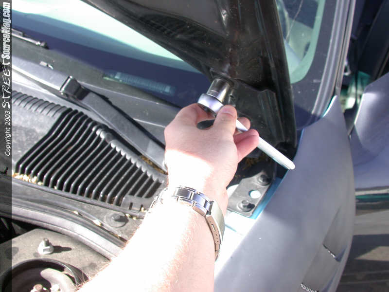 Now simply reattach the hood latch to the new hood in the exact opposite way you took it off