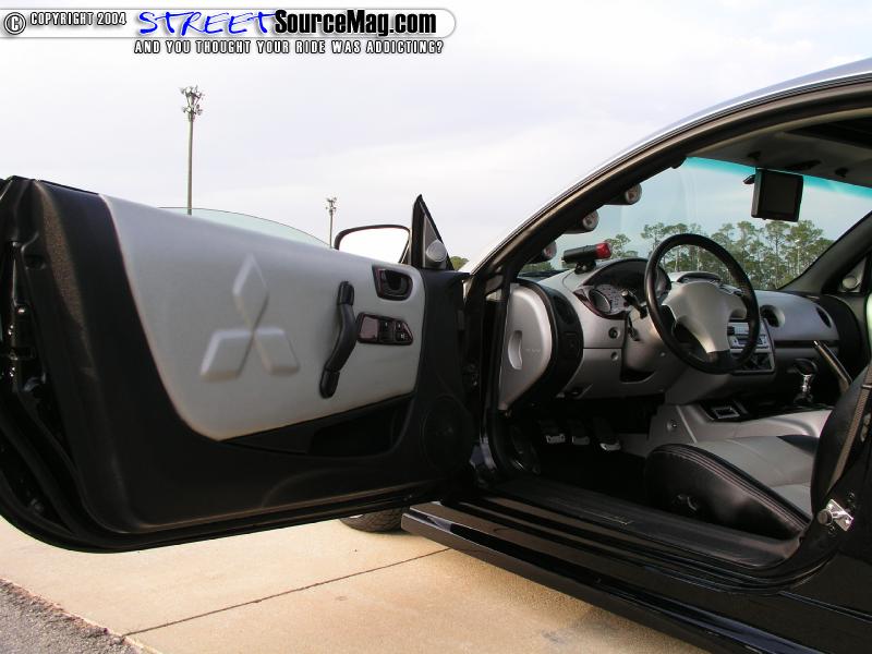 The interior would be next on the modification list. Getting things on the get go, Matthew would drop the Eclipse off at Snellgrove’s Custom Upholstery of Enterprise, Al. While at the shop there would be many items changed up.   The dash would be painted black and silver matching the exterior while the door panels would by shaved and painted black and silver with the Mitsubishi symbol embossed.