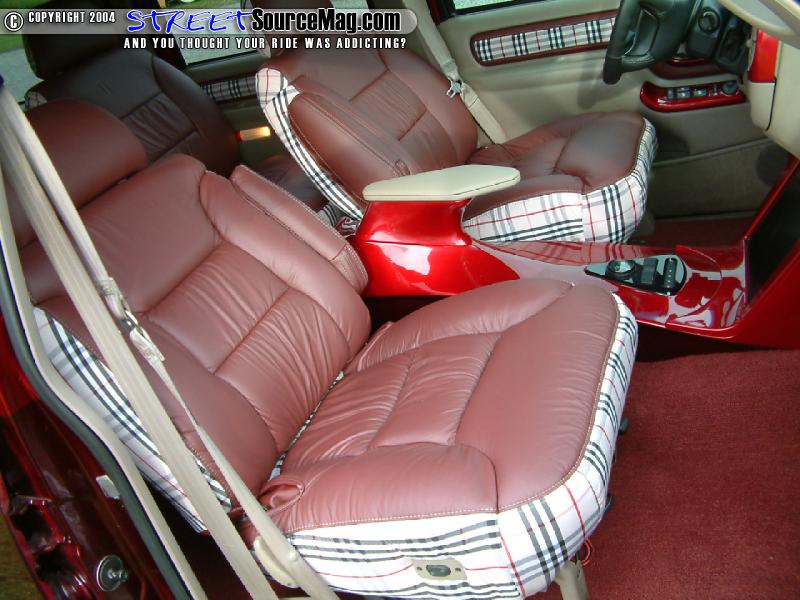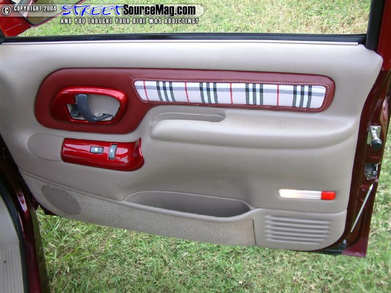 Trying to keep up with the exterior of the Tahoe, Greg would then turn his attention to the interior work. For starters he would paint the dash and vents to match the exterior along with wrapping the door panels in Burberry material.   Next the seats would be stitched up in the same Burberry material as the door panels to help tie things together. The stock bench seat in the rear would then be removed and replaced with two bucket seats.