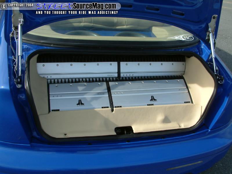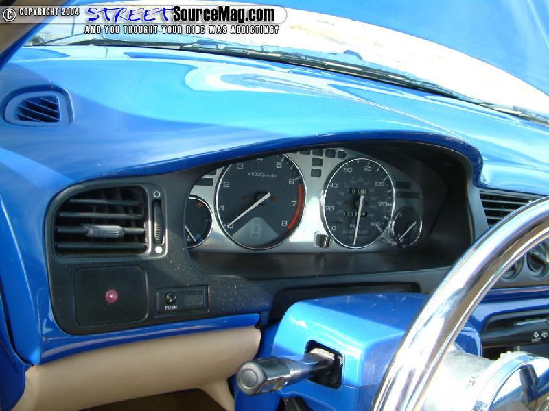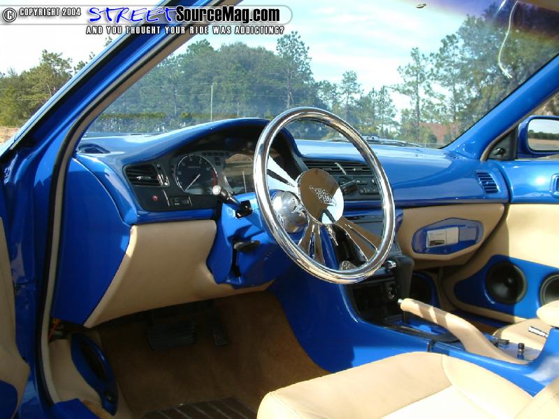 Helping to keep the current Erick would then install 2 Optima yellow top batteries, one 15-ferret cap along with an assortment of high dollar wiring and Dynamat. Finishing off the interior, Donnie would have the seats wrapped and stitched in tan vinyl with ostrich inserts. Billet inserts where installed into the stock gauge cluster and a BAD billet steering wheel would be installed for the final touches.