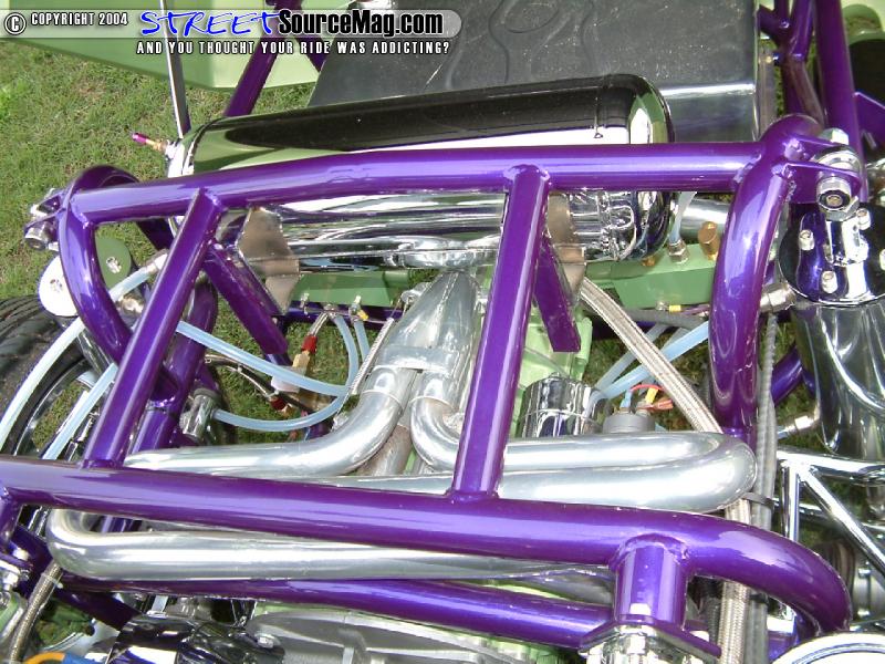 Building a complete truck for most would mean a frame off build up; this would be no different for Brent. Starting with nixing the old frame, Brent’s dad Lyle would begin building a completely new frame made of 1-½ inch tubing. With the chassis complete it would house a VW bus tranny and rear end with custom axles, limited slip and 3:88 ring and pinion.
