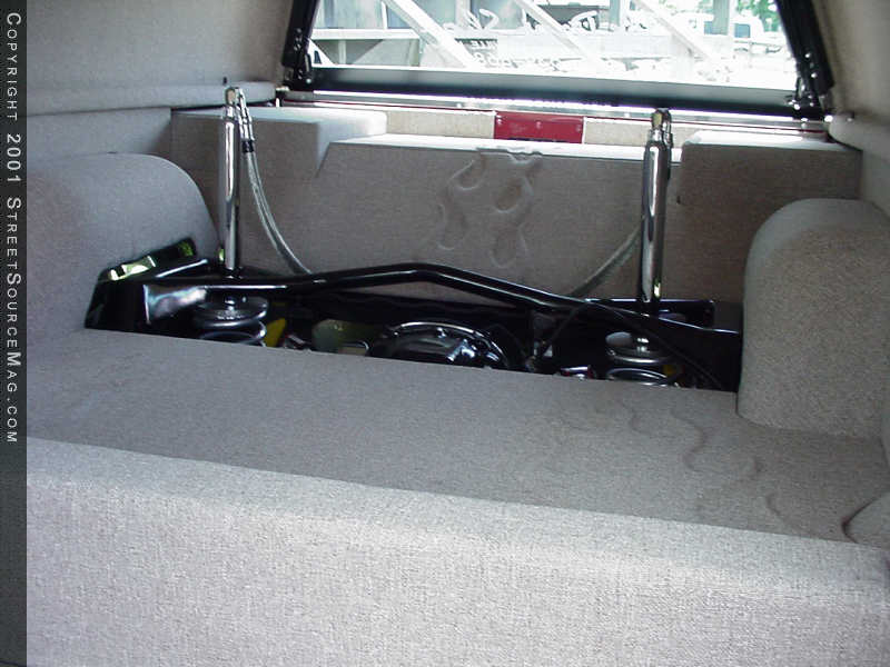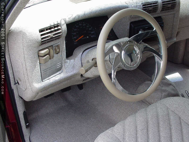 The engine compartment of Mike's S-10 was treated to several chrome and painted goodies. Clean is the main key to winning shows and Mike's engine is as clean as they come. To get a little performance from the stock 2.2 liter 4 cylinder, Mike added a chrome Hot Shot intake.