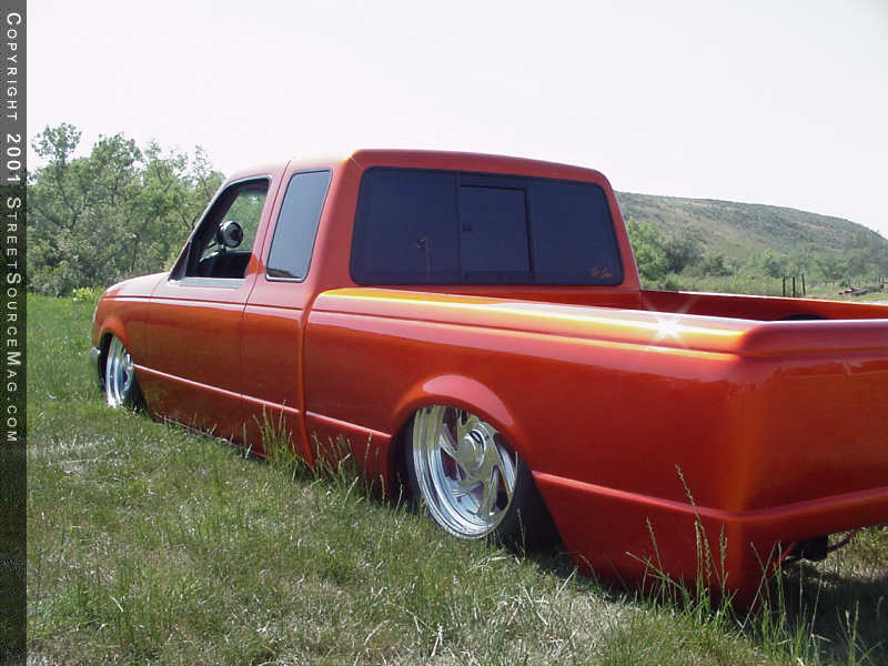 There is no show vehicle complete with out full interior and a kick ass stereo system. Knowing this, Ryan went to town on some of his own kick ass ideas. The first thing he would do would be to install a sweet system. The CD player of choice was a Pioneer deck. Through out the rest of the stereo, Crystal components where used along with four 10-inch subs, which are located in the extra cab. To accent the stereo, Ryan had a custom center console made and painted the same color as the truck along with ghost flames to accent it. To compliment the new center console, he installed a Weld Flames steering wheel.