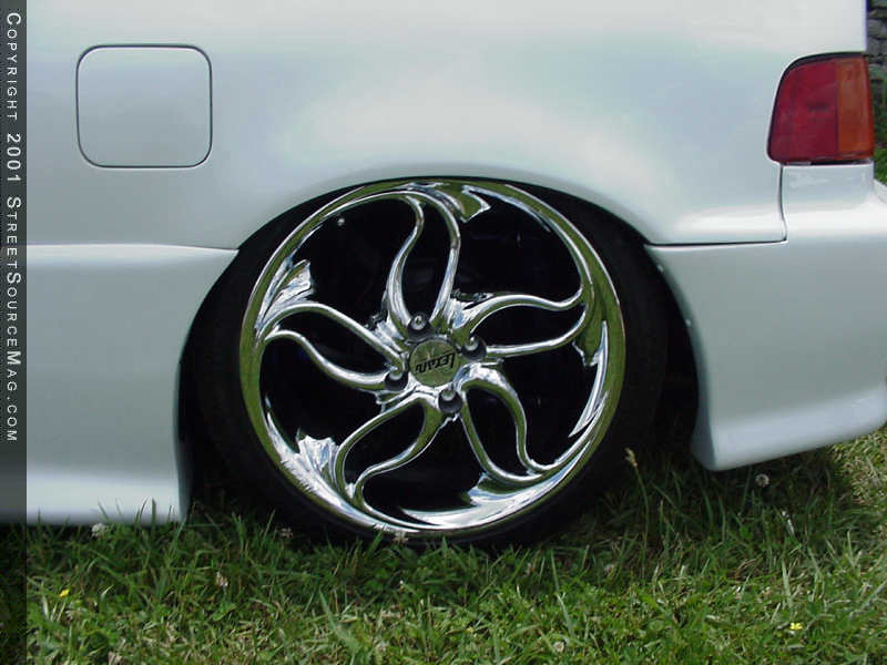 Sitting at the right height now, Brandon decided new wheels and tires should be added to the new lowdown stance of his CRX. Lexani "Solars" were bolted on in the 17x7-1/2 variety. To wrap them, Nitto NT-450 205-40-17 rubber was used. With his CRX as heights below sea level, Brandon moved on the exterior.