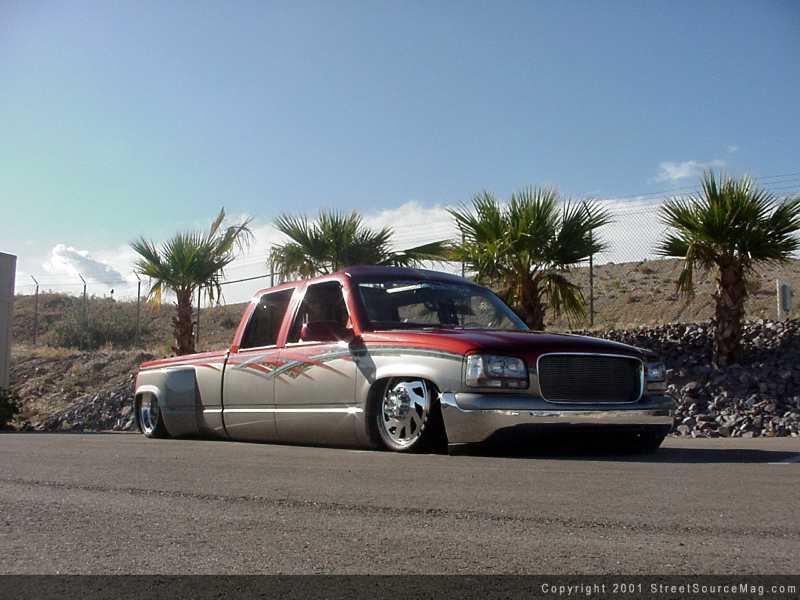 Providing the air to the bags Bill would continue to use the 3/8-inch line along with his very own Ekstensive valves. With the Dually now laid out nicely front to back, Bill found the wheels turning once again not being totally done with the rear frame section. Knowing that this rig would be towing weekend after weekend, Bill came to the conclusion that a gooseneck would be the ultimate solution for the enclosed trailer he had his eyes set on. Keeping to the "first to do" theory, The Ekstensive crew came up with the idea of many different styles of removable step notch's with wicked designs. With this newfound notch, the current one Bill was previously happy with was cut out and replaced. The notches made by Ekstensive have unique designs along with being chrome plated. Are they sturdy and can they handle day-to-day driving? Well the one installed into Bill's ride is fitted with a gooseneck ball and hauls the enclosed trailer filled with rides from coast to coast, so you tell me.