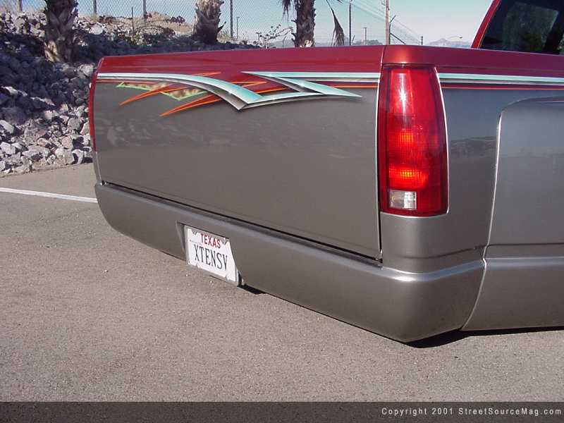 Needing every panel to have a custom feel, the tailgate was smoothed out with the removal of the handle and then matched with a custom roll pan designed by Ekstensive. Although the crew at Ekstensive is masters of body and suspension, the decision was to leave the paint to those, which do it, day in day out.