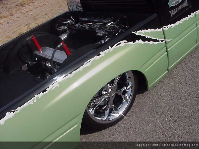 Now a-days 20's are found on quiet a few minitrucks, but unlike most, Kevin made the Isuzu lay all the way around with 20's. Not just on the rear like most commonly seen to date. In order to accomplish this, the firewall would need to be moved in to make room for the wheels. The rear wheel wells would be removed and custom tubs added to give the truck a clean appearance in the bed. After all panels where welded in place, Kevin had the bed Line-X'd to protect the floor, walls and new custom tubs.
