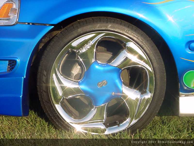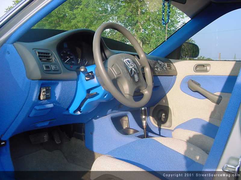 Levi bought his little prizewinner in June of 1999, and since then he has sunk $10,000+ into the car to form it into what you see today even though he says, "he is not done yet" it is close enough for me. Soon after Levi bought his car he new that he was going to show it so he immediately slapped some 17s and a body kit on it and 3500 worth of stereo equipment just to get things started. After about 4 months of working on the car getting it ready for its big debut on the show scene Levi walked outside from school one day to find his civic gone. Luckily the car was found 2 hours later but unfortunately it was totally stripped, so it was back to the drawing board for Levi.