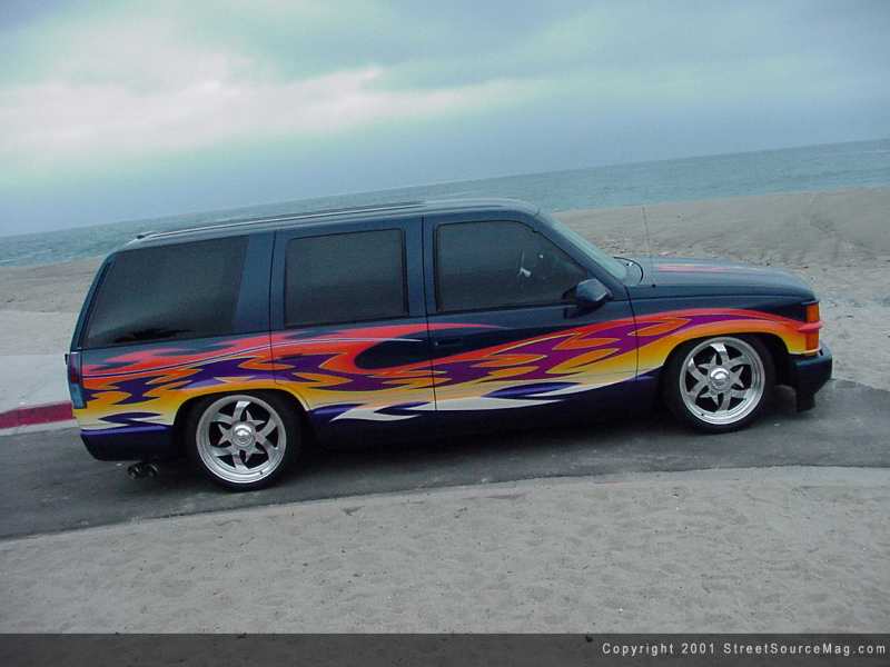 With the front clip sporting the new look, Raul would then move to the rear of the Tahoe. While at the rear, a custom roll pan would be welded in place for an overall smooth look. Accompanying the clean feeling, a set of blue tinted Taillights would be bolted up along with having the window's tinted. With the body now fitted with a smooth stance, it was time for paint. While at Dick Vales of Stanton, California, the base coat of Blue PPG paint would be laid down.