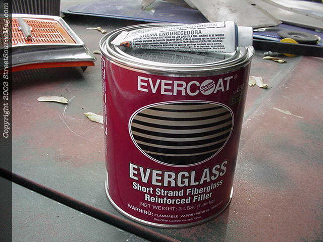 5. With the paint stripped from the metal, you will then need to apply a good amount of the Duramix. After applied put the door handle back in right away before the Duramix cures (couple hours). With the handle in place make sure to bolt it back in for stability. When the Duramix is cured, cut access away and cut down in grove about 1/8 inch leaving room for the Everglass to cure to the pot metal door handle and door. (If that step is skipped the chemical reaction between the Everglass and Duramix will cause swelling.)