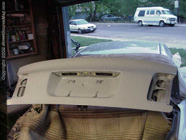 11. Once the putty is sanded we went ahead and sanded down the trunk and prepped for primer. 12. Once ready, the primer was sprayed and ready for whatever we decided to do next.