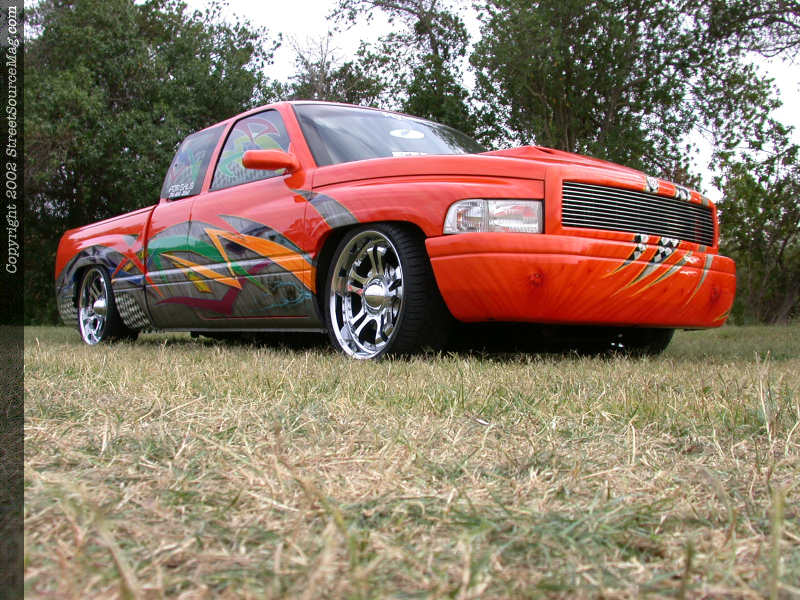 Most often a reason for rebuilding a ride is because one of 3 things. One, the ride was in a wreck. Two, the ride was stolen and stripped, or the most common is just because you are ready for something new and exciting. Well in Edgar Ruiz's case it was all of the above but not necessarily in that order. After originally putting down $25,000 on a Dodge Ram 1500 back in 1997 Edgar had many ideas in mind for his customizing needs. While working in his ideas the Ram was stolen and stripped. After it was returned to Edgar it was then in a wreck. Thank god for Edgar he had got involved with the scene through his Auto Body shop while in school and it would make fixing things much easier. It would take 3 turns and 2 years to complete Edgar's phat Dodge Ram.