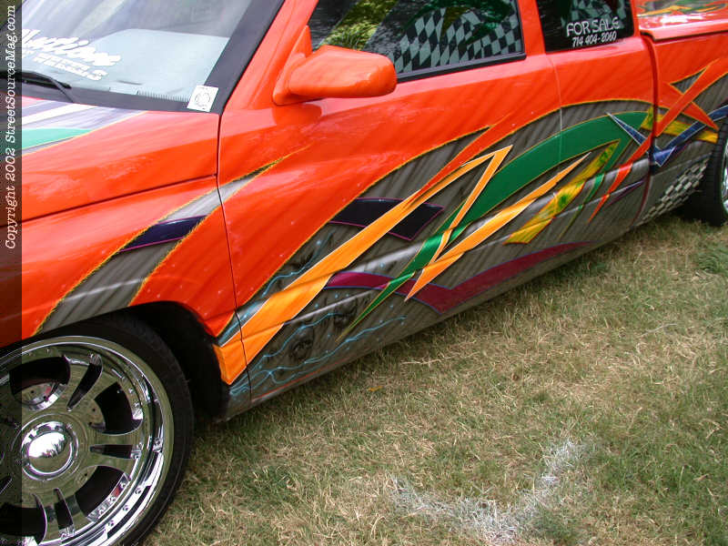 Moving to the rear, the doors would be shaved of the handles and the stock mirrors where replaced with a set of Street Scene mirrors. The gas filler was shaved smooth and relocated into the bed. When you get to the rear of the Ram you first notice the 1978 Caddy taillights frenched in replacing the stock lights.