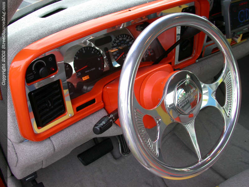 To complement the interior, a Colorado Customs steering wheel would be installed along with a MIC billet rear view mirror and custom gauges.