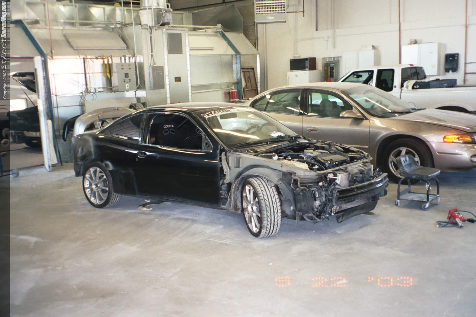 Welcome to the most exciting installment of Project Z so far. If you read last months article you know that a crotch rocket hit it pretty good. Nobody enjoys watching their pride and joy get demolished by a drink driver, but it makes for a perfect opportunity to do a complete color change (and in our case some mean looking carbon fiber flames).After dealing with the insurance a little bit, I took the car to a good friend of mine (and badd ass body man), Matt "Porkchop" stearns of dent pro colors here in boise. As you will see, it went from banged up to bad ass in just a few weeks. If you live in the boise area, give him a call at (208) 867-2457, he is a great guy to work with and does a very good job.