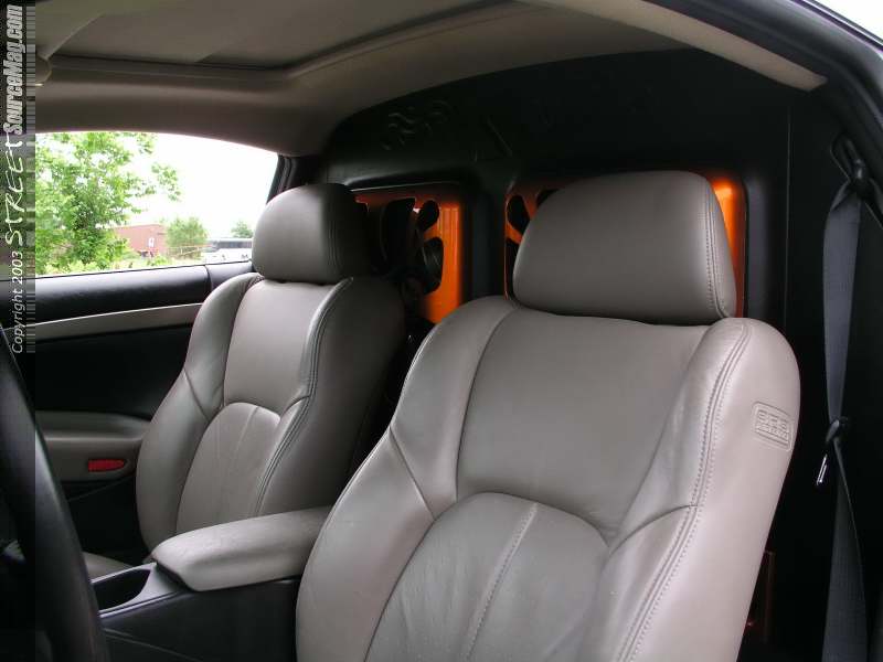 Once the wall was in place it was treated to black leather. To supply the tunes an Alpine head unit was installed in the dash were the factory control unit once resided. To ensure that the subs didn't drowned out the vocals a set of Kicker Comp 6 ½" mids and 1" tweeter separates were installed in the factory locations.